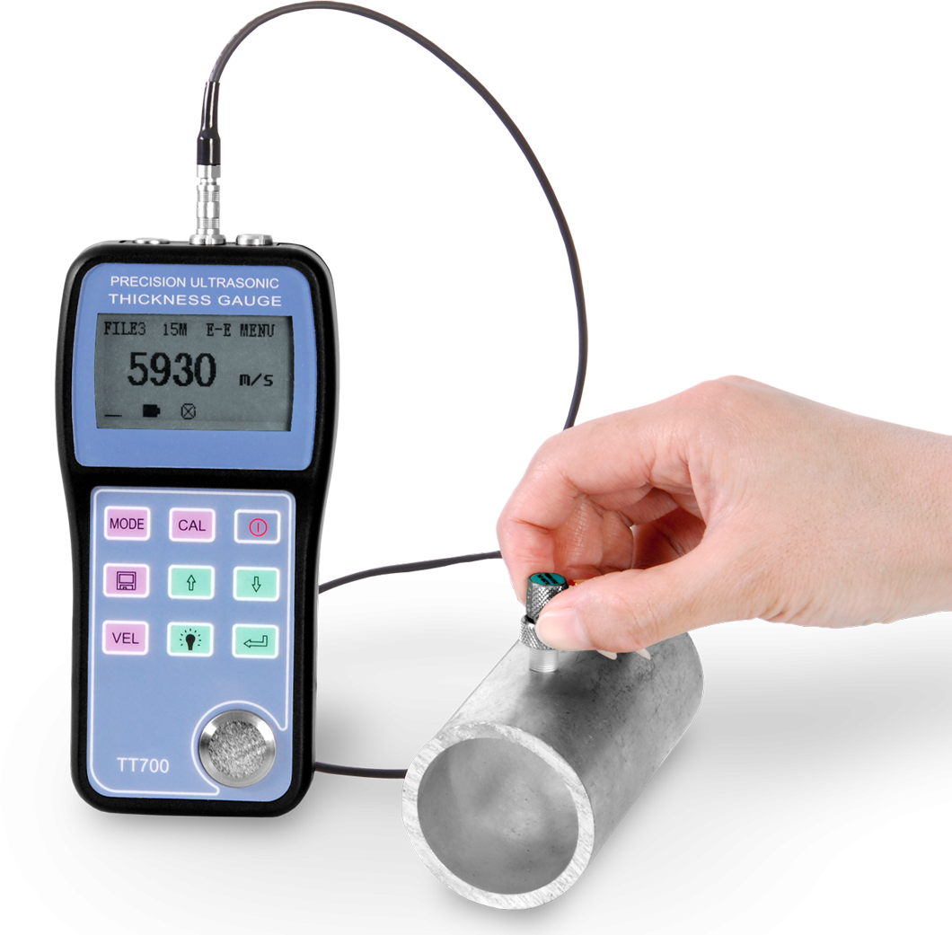 Az új, ergonómikusan kialakított kézi INNOVATEST TT-700 típusú ultrahangos hordozható falvastagság mérő készülék nagy teljesítményt nyújt kis csomagolásban. Legnagyobb előnye a 0,15 és 20 mm közötti mérési tartomány (acéllemezek esetében), mivel a segítségünkre lehet, ha más vastagságmérők már nem képesek mérni ezeket a tartományokat. A kezelőfelület rendkívül felhasználóbarát, tartalmaz egy központi üzemmódgombot, egy kalibrációs kulcsot, és három funkcióbillentyűt is a funkcióvezérlés aktiválásához és beállításához, valamint a menüben történő navigáláshoz. Ezenkívül találhatunk még egy gombot a készüléken az adatok tárolásához / továbbításához is. Beépített acél kalibráló lemezzel kapható, a kijelző felbontása 0,001 és 0,01 mm között változtatható. Ha dokumentálnunk kell a mérési eredményeket, azokat kinyomtathatjuk vagy átmásolhatjuk egy számítógépre is.